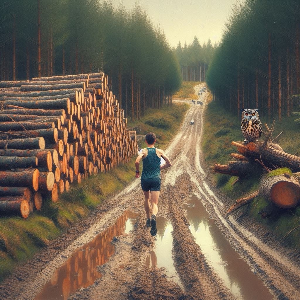 Logging roads: armed with invisible rocks, pot holes and ditches competing to face-plant unwary runners or eat a chunk out of my flesh or collar bone. They have done and I have the scars to prove it.